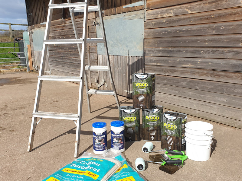 Weathered timber stables refreshed and protected using Bond It wood treatment products.